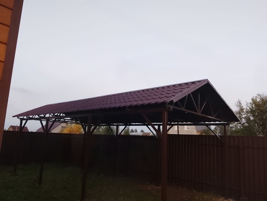 Двускатный навес из металлочерепицы для загородного дома Арт-655